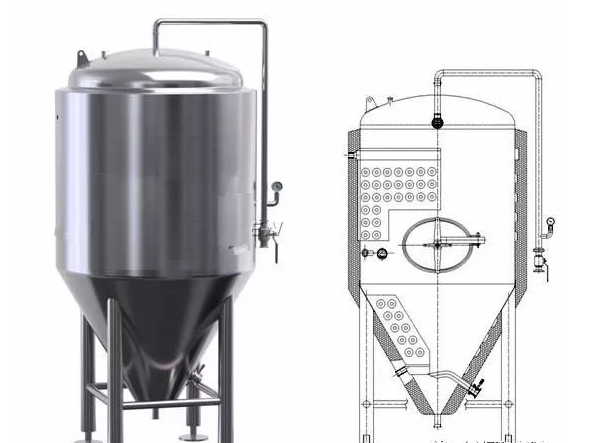 我重点说下100L-5000L以内的这种小型密封式的锥形发酵罐。